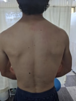 ~左右の肩の高さの違い、肩甲骨の突出、腰の高さの非対称