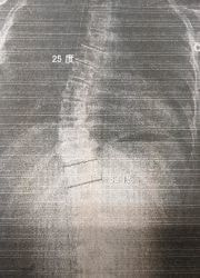 ・骨の成長終了後(18-20歳以上)もコブ角が40度を超えた側弯症は、年間0.5~1度程度の進行がある
